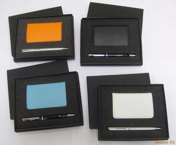 PU Leather Card Holder Pen Set